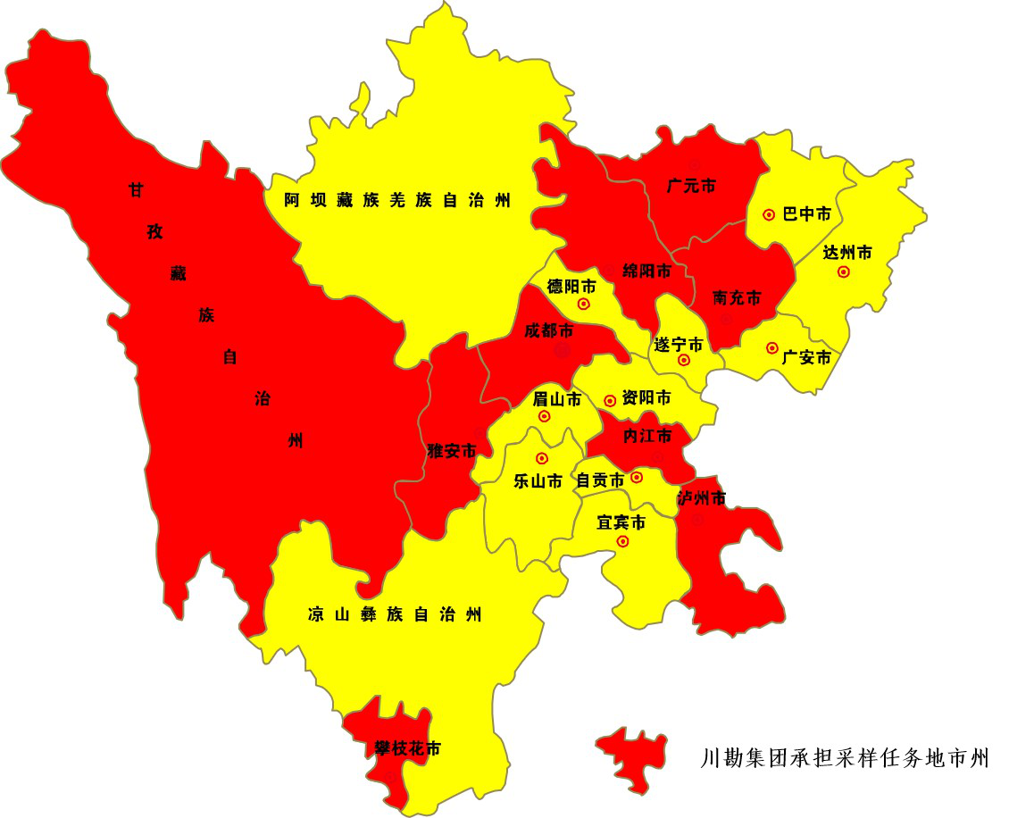 川勘集团承担了四川省重点行业企业用地调查采样约50%的工作量,遍及成都市、绵阳市、内江市、南充市、泸州市、攀枝花市、广元市、雅安市、甘孜州等9个地市州,共包括383个地块、14个工业园、2个背景点的土壤及地下水采样工作。